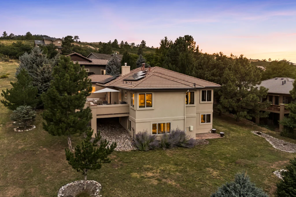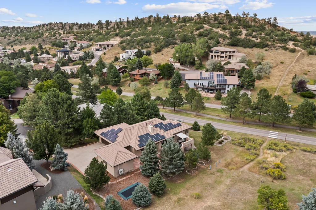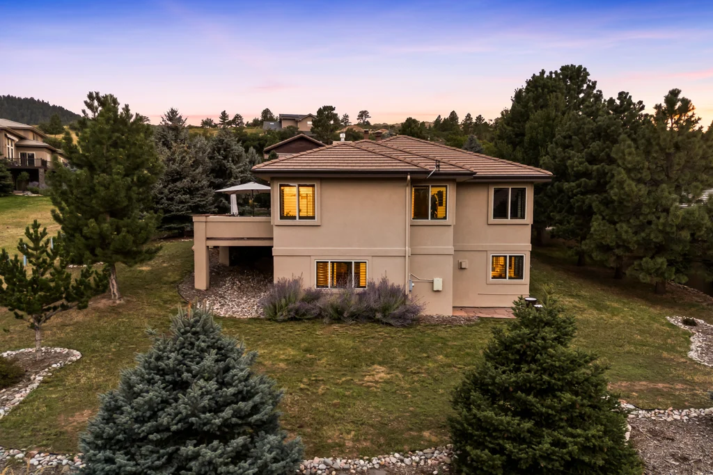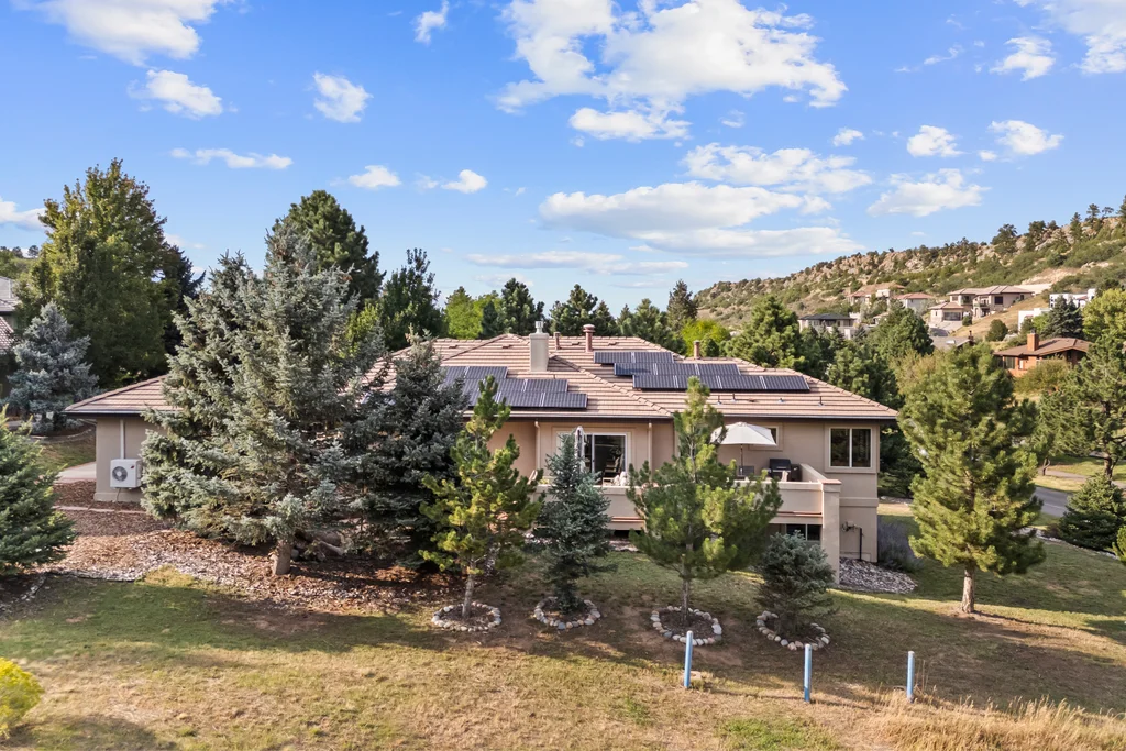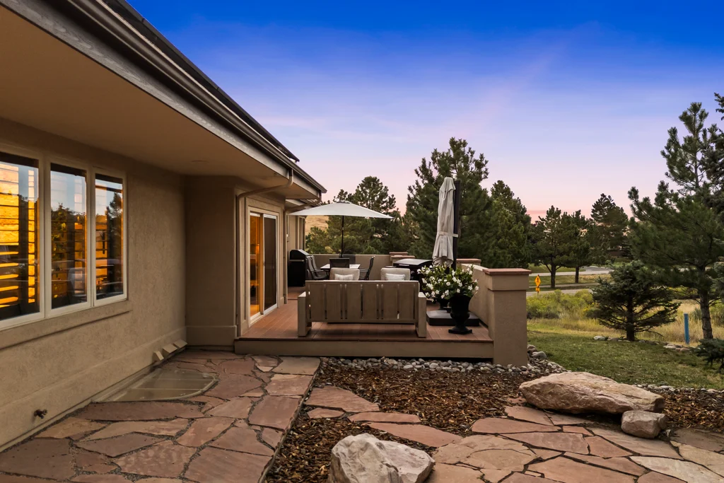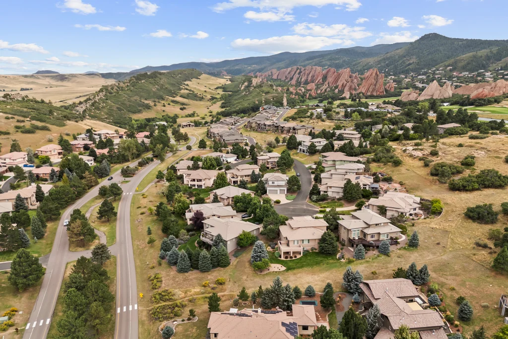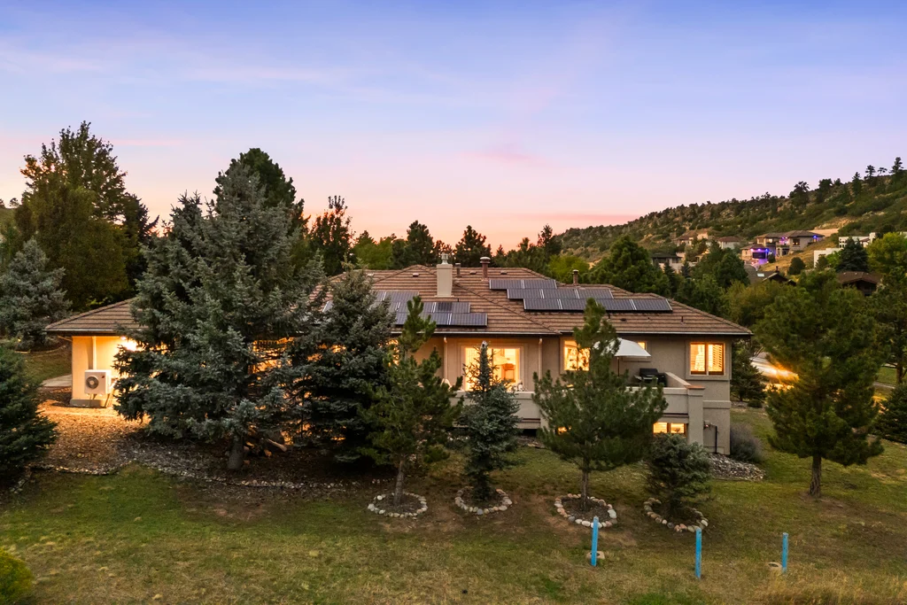 Nestled in the stunning gated community of Roxborough Park, surrounded by dramatic red rock formations, this 5 bedroom, 3 bathroom home offers the perfect blend of Colorado charm and ease of living. Step inside to find luxury California wide plank hardwood floors, soaring nine foot doors, and plantation shutters throughout. The main level boasts a cozy living and dining area with a Texas limestone wall feature, spacious primary suite with a spa-like ensuite, a secondary bedroom, and a second full bathroom. The chef’s kitchen is a dream, featuring stainless GE Monogram appliances, including a side-by-side refrigerator and freezer, 6 burner gas stove, built in wood-fire oven, granite island seating for nine, under cabinet lighting, and abundant storage—all designed for both everyday living and entertaining. Enjoy cozy evenings by one of two gas fireplaces or take the party outside to the large deck, perfect for watching local wildlife wander along the adjacent greenbelt. The walkout basement offers ultimate entertainment with a home theater, pool table area, additional living space, three bedrooms and a full bathroom. A detached office and private workout room, connected to the front of the home by a breezeway, provide quiet spaces for work or fitness. Additional highlights include seller-owned solar panels, an in-ground trampoline, and morning visits from local wildlife right outside your door. Roxborough Park’s gated entry, natural beauty, and sense of community make this property a true retreat—just minutes from hiking trails, golf courses, and all the amenities you need.