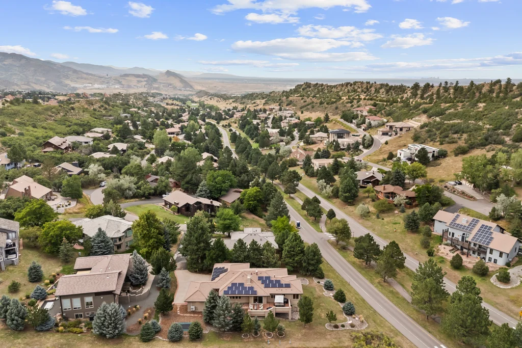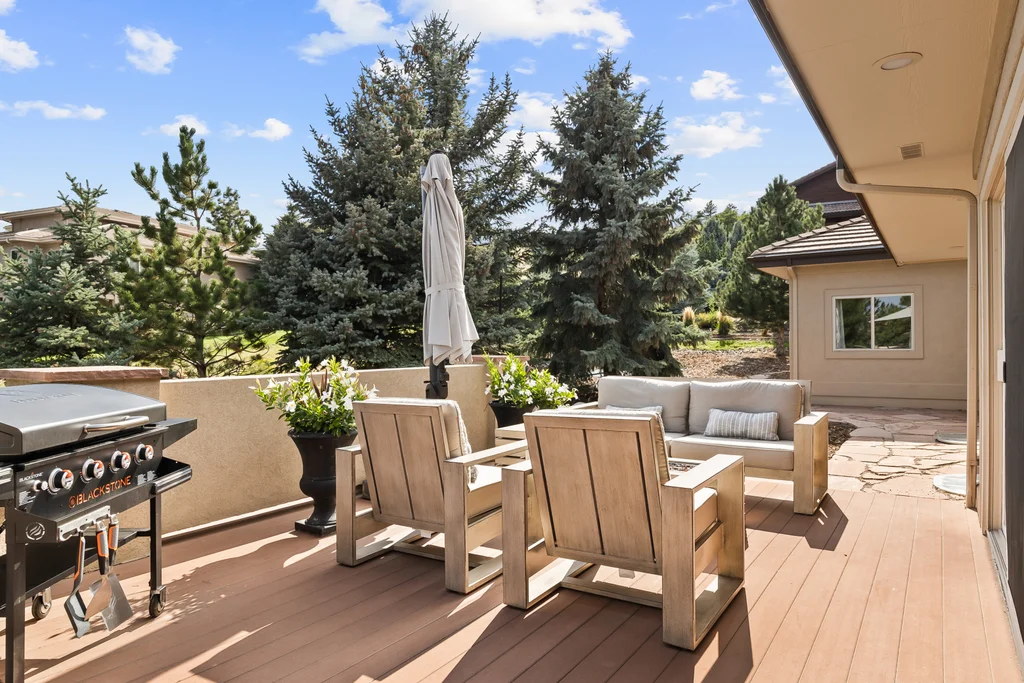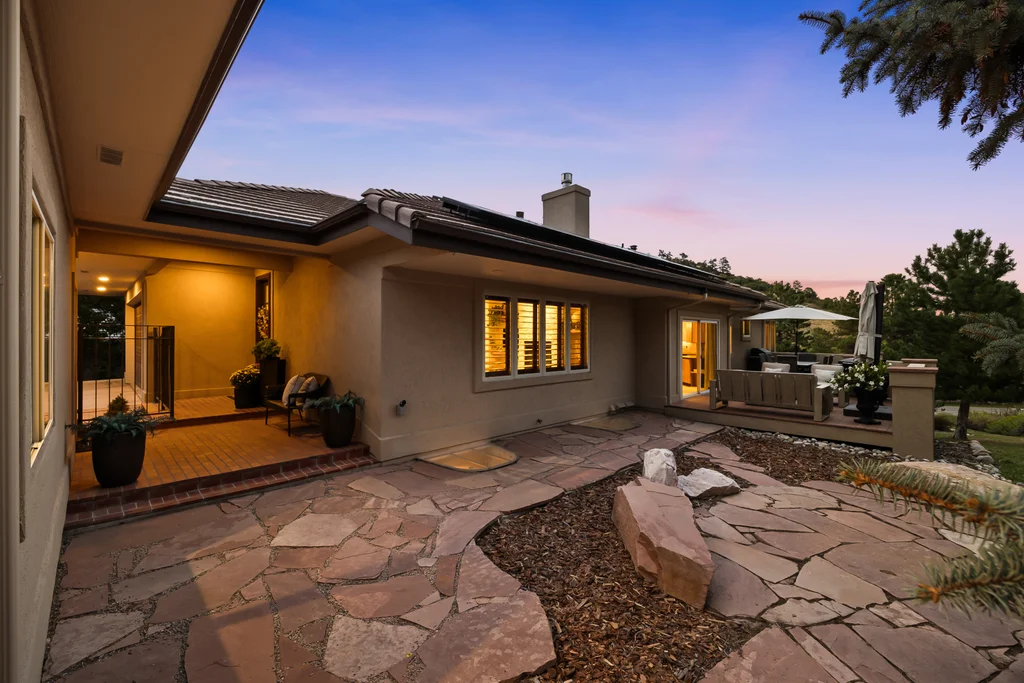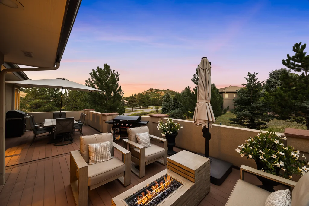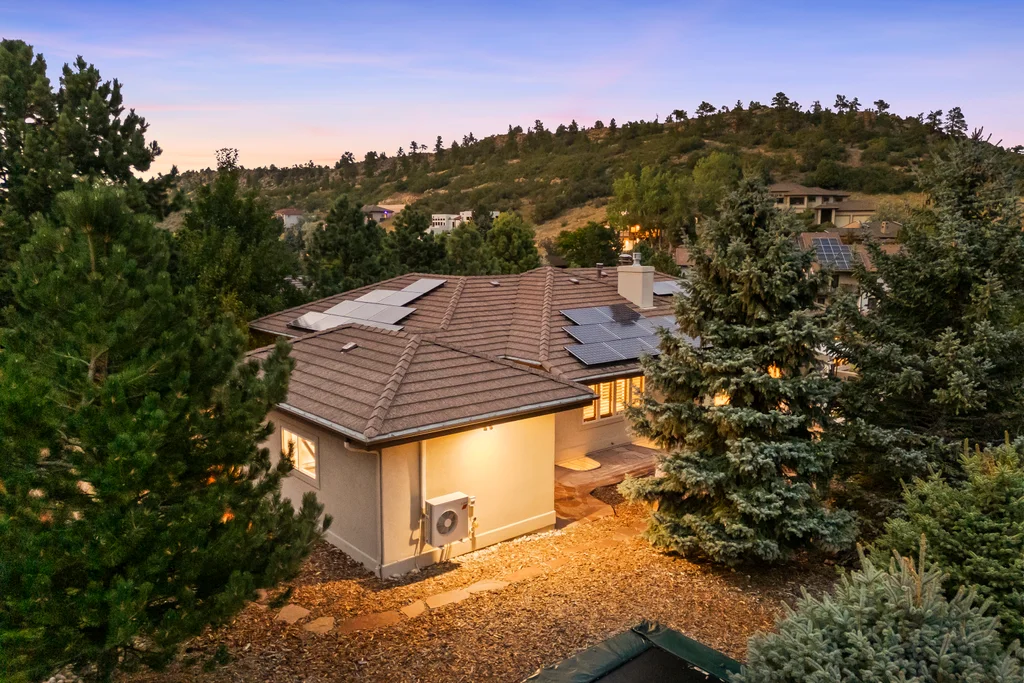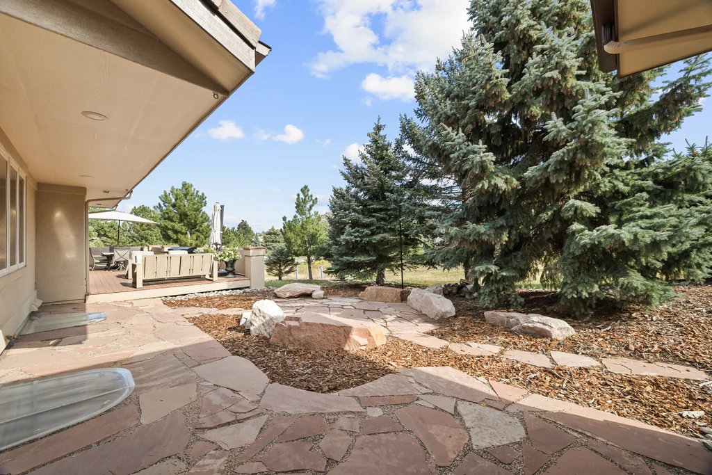 Nestled in the stunning gated community of Roxborough Park, surrounded by dramatic red rock formations, this 5 bedroom, 3 bathroom home offers the perfect blend of Colorado charm and ease of living. Step inside to find luxury California wide plank hardwood floors, soaring nine foot doors, and plantation shutters throughout. The main level boasts a cozy living and dining area with a Texas limestone wall feature, spacious primary suite with a spa-like ensuite, a secondary bedroom, and a second full bathroom. The chef’s kitchen is a dream, featuring stainless GE Monogram appliances, including a side-by-side refrigerator and freezer, 6 burner gas stove, built in wood-fire oven, granite island seating for nine, under cabinet lighting, and abundant storage—all designed for both everyday living and entertaining. Enjoy cozy evenings by one of two gas fireplaces or take the party outside to the large deck, perfect for watching local wildlife wander along the adjacent greenbelt. The walkout basement offers ultimate entertainment with a home theater, pool table area, additional living space, three bedrooms and a full bathroom. A detached office and private workout room, connected to the front of the home by a breezeway, provide quiet spaces for work or fitness. Additional highlights include seller-owned solar panels, an in-ground trampoline, and morning visits from local wildlife right outside your door. Roxborough Park’s gated entry, natural beauty, and sense of community make this property a true retreat—just minutes from hiking trails, golf courses, and all the amenities you need.