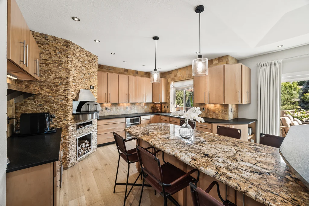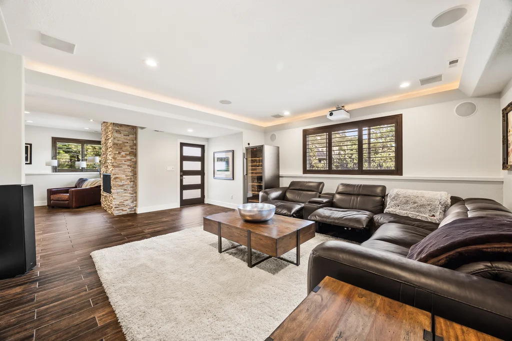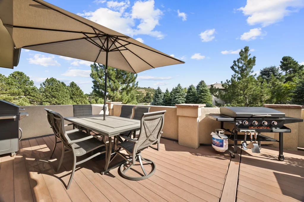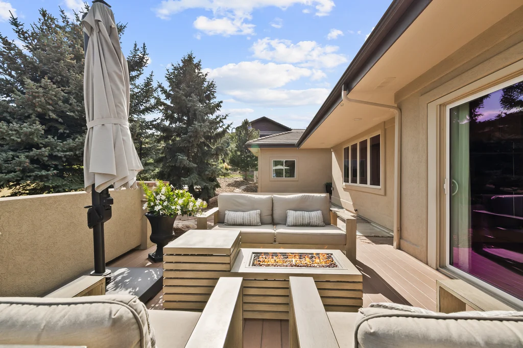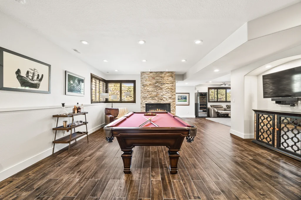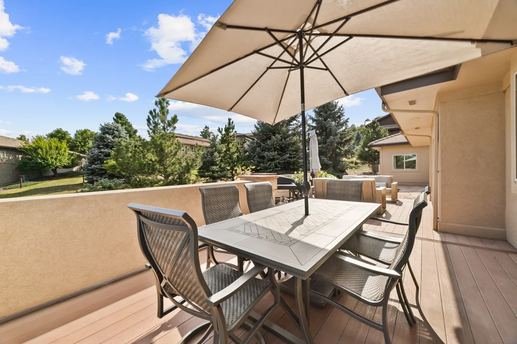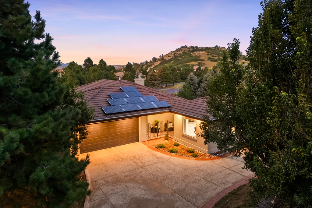 Nestled in the stunning gated community of Roxborough Park, surrounded by dramatic red rock formations, this 5 bedroom, 3 bathroom home offers the perfect blend of Colorado charm and ease of living. Step inside to find luxury California wide plank hardwood floors, soaring nine foot doors, and plantation shutters throughout. The main level boasts a cozy living and dining area with a Texas limestone wall feature, spacious primary suite with a spa-like ensuite, a secondary bedroom, and a second full bathroom. The chef’s kitchen is a dream, featuring stainless GE Monogram appliances, including a side-by-side refrigerator and freezer, 6 burner gas stove, built in wood-fire oven, granite island seating for nine, under cabinet lighting, and abundant storage—all designed for both everyday living and entertaining. Enjoy cozy evenings by one of two gas fireplaces or take the party outside to the large deck, perfect for watching local wildlife wander along the adjacent greenbelt. The walkout basement offers ultimate entertainment with a home theater, pool table area, additional living space, three bedrooms and a full bathroom. A detached office and private workout room, connected to the front of the home by a breezeway, provide quiet spaces for work or fitness. Additional highlights include seller-owned solar panels, an in-ground trampoline, and morning visits from local wildlife right outside your door. Roxborough Park’s gated entry, natural beauty, and sense of community make this property a true retreat—just minutes from hiking trails, golf courses, and all the amenities you need.