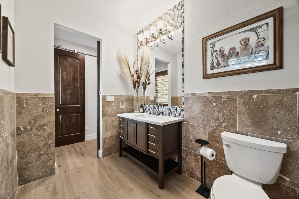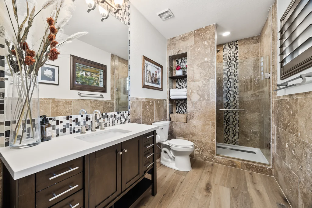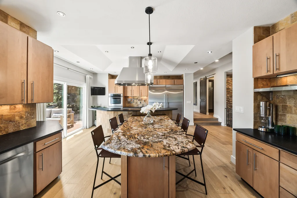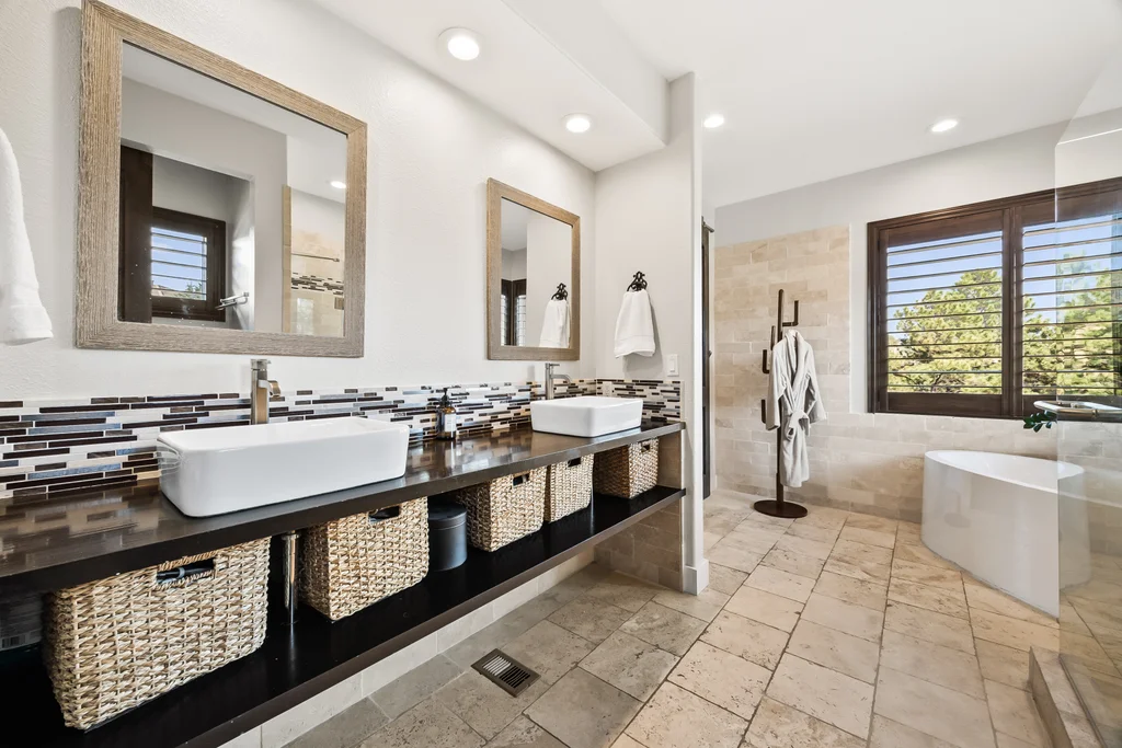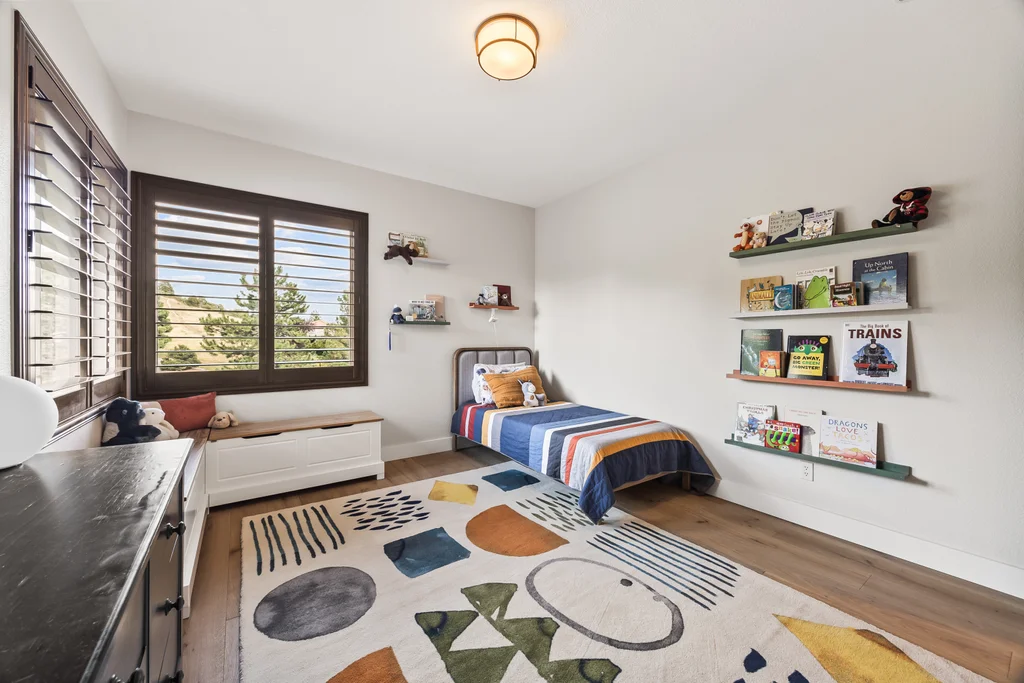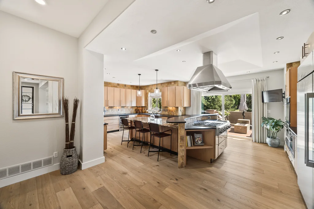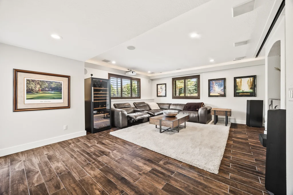 Nestled in the stunning gated community of Roxborough Park, surrounded by dramatic red rock formations, this 5 bedroom, 3 bathroom home offers the perfect blend of Colorado charm and ease of living. Step inside to find luxury California wide plank hardwood floors, soaring nine foot doors, and plantation shutters throughout. The main level boasts a cozy living and dining area with a Texas limestone wall feature, spacious primary suite with a spa-like ensuite, a secondary bedroom, and a second full bathroom. The chef’s kitchen is a dream, featuring stainless GE Monogram appliances, including a side-by-side refrigerator and freezer, 6 burner gas stove, built in wood-fire oven, granite island seating for nine, under cabinet lighting, and abundant storage—all designed for both everyday living and entertaining. Enjoy cozy evenings by one of two gas fireplaces or take the party outside to the large deck, perfect for watching local wildlife wander along the adjacent greenbelt. The walkout basement offers ultimate entertainment with a home theater, pool table area, additional living space, three bedrooms and a full bathroom. A detached office and private workout room, connected to the front of the home by a breezeway, provide quiet spaces for work or fitness. Additional highlights include seller-owned solar panels, an in-ground trampoline, and morning visits from local wildlife right outside your door. Roxborough Park’s gated entry, natural beauty, and sense of community make this property a true retreat—just minutes from hiking trails, golf courses, and all the amenities you need.